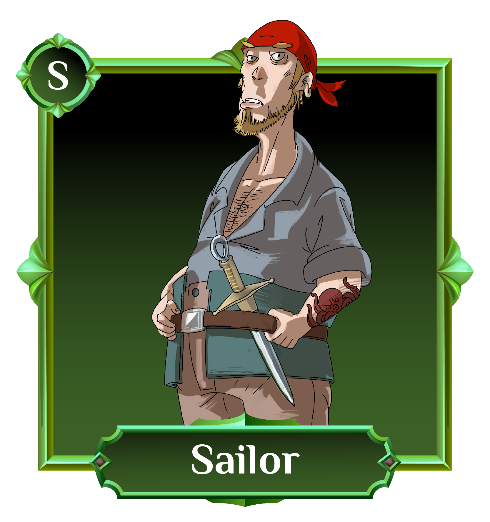 Story: The Sailor spent the last coin in his pocket and stumbled away from the noisy bar. He couldn't remember how long he had been sitting on that shiny, black stool. Pushing open the bar's door, the midday sun blinded him, causing dizziness. Face to face with a burly man about to enter, the sickly sweet smell of rum surged up from his stomach, and the Sailor let out a long belch. The burly man grabbed the Sailor's collar, ready to throw a punch, but then he caught sight of the red sea monster tattoo on the Sailor's left arm, and his clenched fist relaxed. "Sailor from the Victory," he muttered. "You better get going, you're setting sail again this afternoon!" ... The Sailor of the Victory, the only ship to have escaped an attack from the red sea monster.